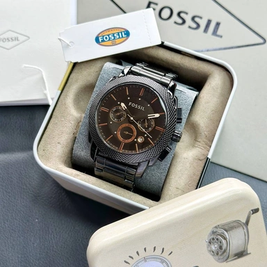 ✅This 45 mm fossil features a black dial, chronograph movement and full black metal strap